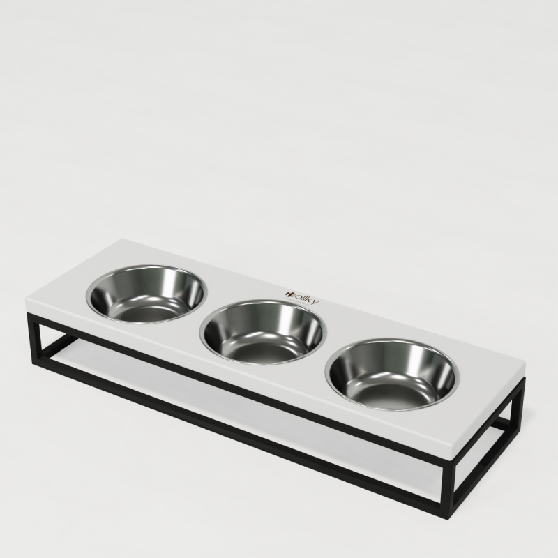 Hollky Base Bar - це стильне та функціональне рішення: три миски для сухого корму, вологого корму й води. Ідеально підходить для котів, маленьких собак або для годування кількох улюбленців одночасно.