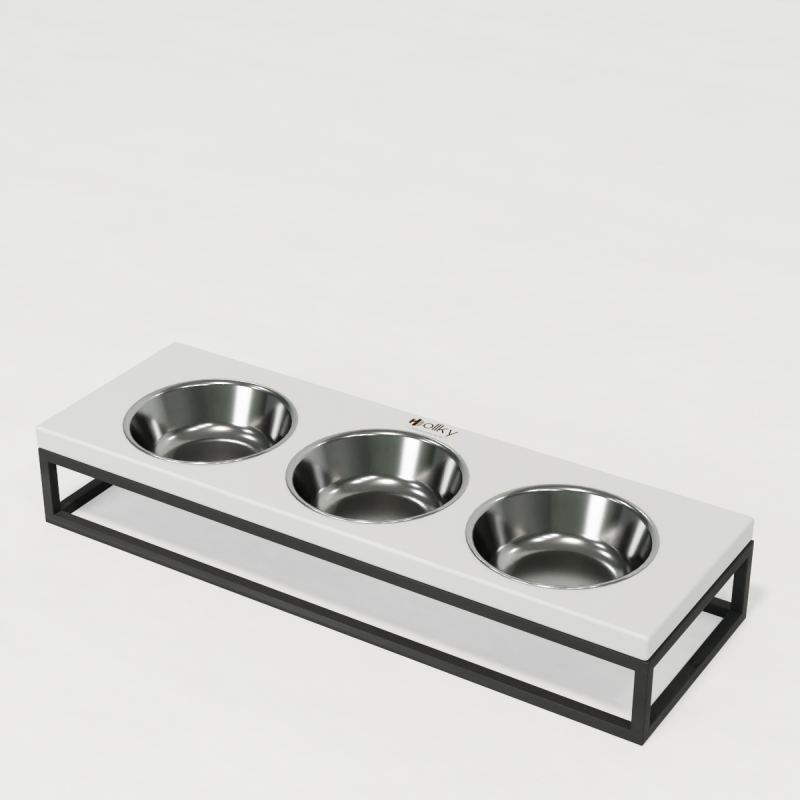 Hollky Base Bar - це стильне та функціональне рішення: три миски для сухого корму, вологого корму й води. Ідеально підходить для котів, маленьких собак або для годування кількох улюбленців одночасно.