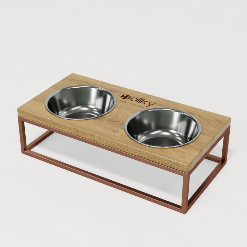 Hollky Base M - стильна й практична годівниця для собак вагою 5–12 кг та великих котів (мейн-куни та ін.). Міцна металева основа й дерев’яна стільниця доповнені великими мисками з нержавіючої сталі. Продумана висота 10 см дозволяє тварині комфортно їсти, а легкість догляду робить модель ідеальною для щоденного використання.