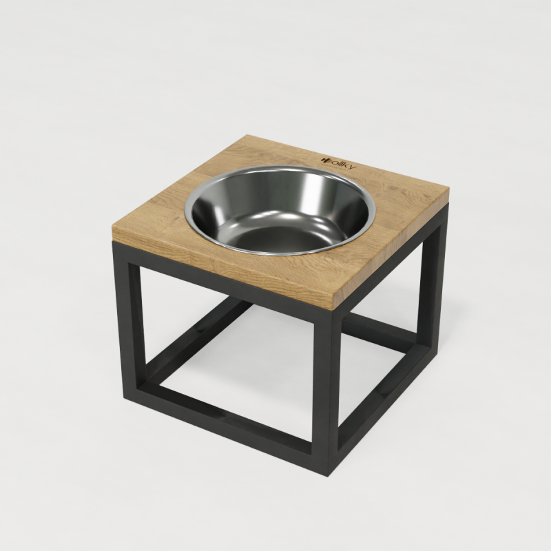 Hollky Base Solo XL - містка й міцна годівниця для великих собак. Натуральна дерев’яна стільниця, посилена металева рама й глибока миска з нержавіючої сталі забезпечують стабільність і зручність годування щодня.