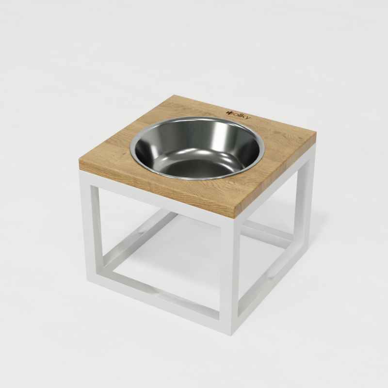 Hollky Base Solo XL - містка й міцна годівниця для великих собак. Натуральна дерев’яна стільниця, посилена металева рама й глибока миска з нержавіючої сталі забезпечують стабільність і зручність годування щодня.
